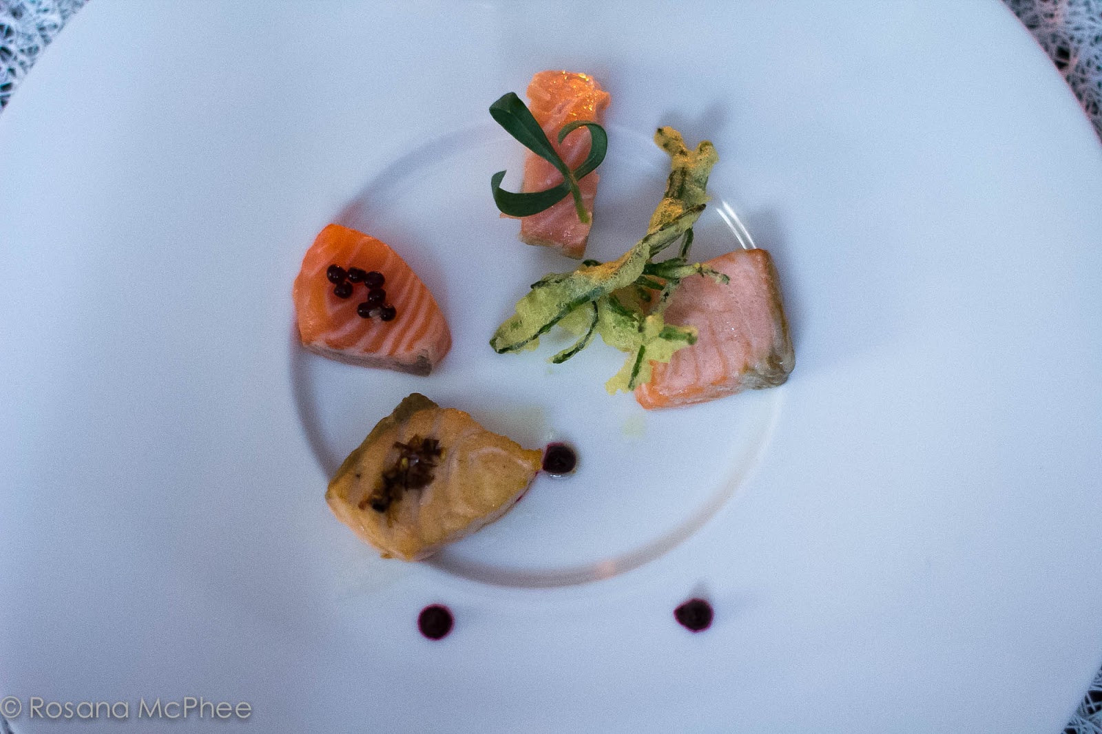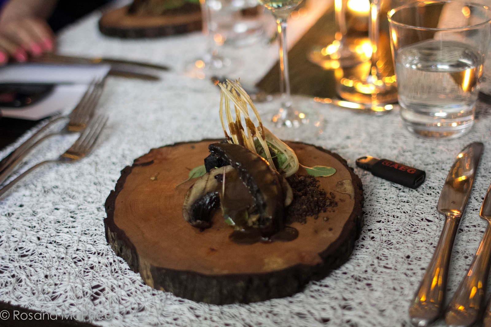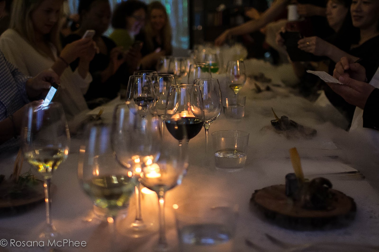 The evening took us on a gourmet journey through a film-documentary divided into four parts on how to take taste further. The first part is about source and foraging for local and seasonal food. We experienced food with sounds, smells, and reproduction of fog on the table like we were in a forest. Very theatrical and impressive.