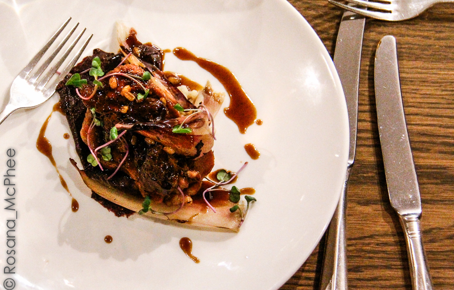 The dinner was organised by fellow blogger Giulia, who invited a group of very friendly bloggers to taste The Imperial’s new menu. The new menu is stunning and has a strong fine-dinning feel to it. Presentation and creativity using  seasonal and locally sourced ingredients with a definitely Nordic feel in some of the dishes. They still serving Sunday roast and share plates too, like the Schezuan glazed whole roast duck, spiced red cabbage, coconut rice broccoli, red pepper sauce.
