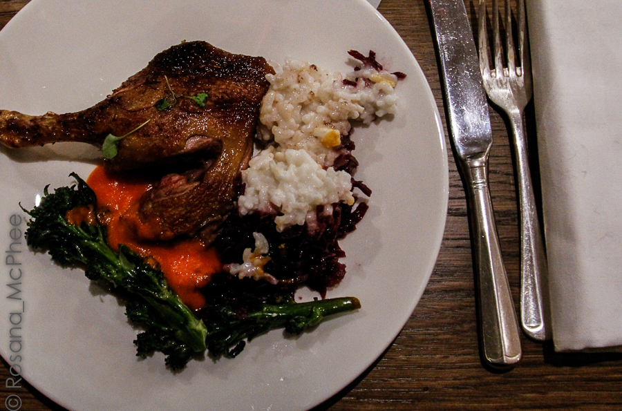 Love the coconut rice in this dish! not so sure it needed the red pepper sauce… Schezuan glazed whole roast duck, spiced red cabbage, coconut rice broccoli, red pepper sauce