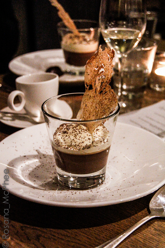 creamy and just the right sweetness : chocolate pot, barley foam, barley crisp and  chocolate sorbet