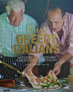 I was very excited to receive my copy of the Two Greedy Italians* through the post last Wednesday morning in exchange for a review.  The book cover jacket picture truly reveals the strong and long standing friendship between Carluccio and Contaldo, two worldwide famous Italian chefs, who have been cooking up a storm in the UK for the last 30 years since leaving Italy separately and eventually meeting and working together for a while in Britain.