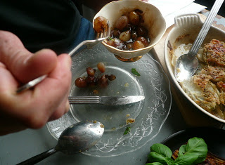 Recipes I cooked : Stuffed Quail’s Eggs,  Garlic Soup, Salt Cod Salad, Baked Stuffed Aubergine, Sweet & Sour Baby Onions,  Baked Fennel, Lemon Granita and  the grand finale: the seductive and velvety Chocolate and Amaretto Pudding.  I can’t wait to try the freshly made past dishes now that my good friend Pedro gave me a pasta machine for my birthday.