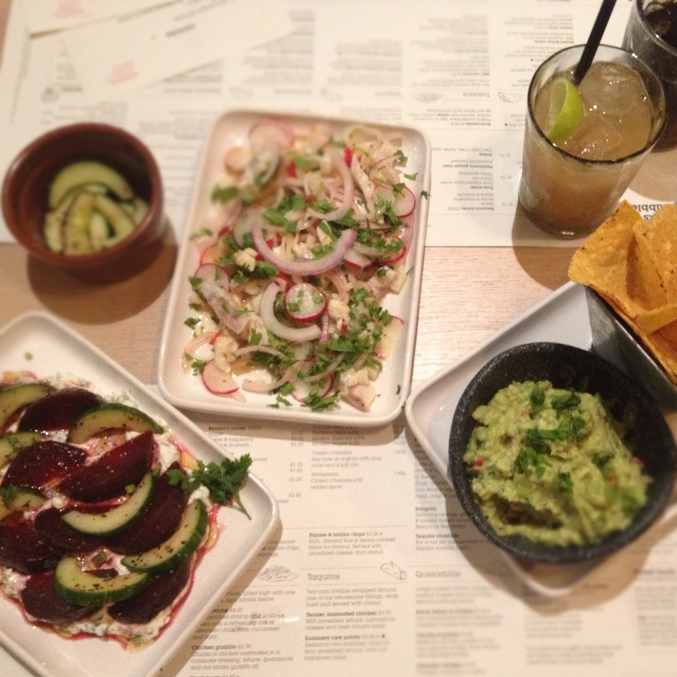 We tried our hands at three recipes ceviche, classic guacamole and my new favourite salad cucumber, chilli, beetroot and ricotta salad. We prepared the dishes in pairs, I was paired  with a rather nice food & fashion blogger Clare from Humbugs and Handbags . All recipes came with a very pleasing and descriptive intro.  Tommi’s enthused the room with her energy and knowledge about all things Mexican.  We were also given a copy of her new book  Wahaca Mexican food at home, a collection of 130 recipes based on cantinas, street food, markets and parties collected by Tommi’s over the last 5 years.