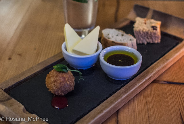 Bath soft cheese and Veal bonbon, selection of bread made in-house, rosemary and chilli were my favourites.